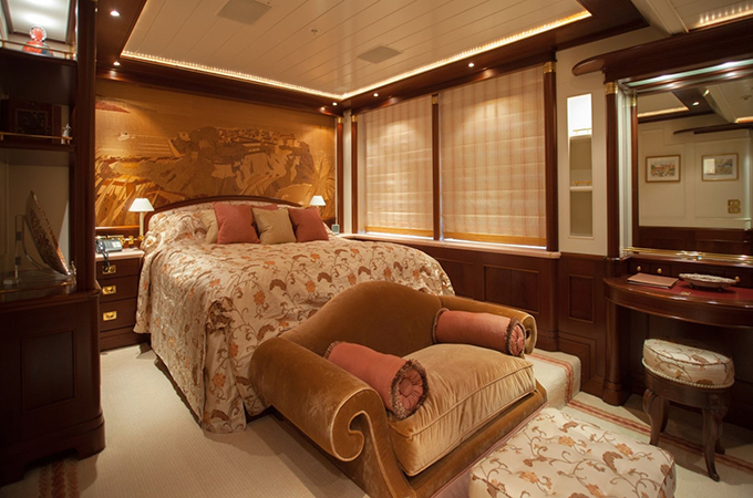 Its special features include a full-beam master suite, ample outdoor space, an elevator, a beauty salon, a large sundeck and three tenders.